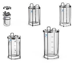 實驗室用的發酵罐的體積一般為幾升至幾十升,其罐體通常由玻璃構成。為滿足工藝要求,罐體必須能承受發酵工作時和滅菌時的工作壓力和溫度。罐壁厚度取決于罐徑、材枓及耐受的壓強。